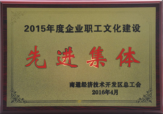 南通三圣榮獲“2015年度企業(yè)職工文化先進集體”榮譽稱號