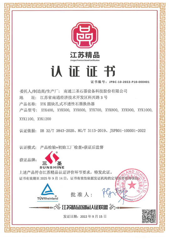 優(yōu)質(zhì)產(chǎn)品是企業(yè)的核心,公司石墨設(shè)備標(biāo)準(zhǔn)化建設(shè)獲得“江蘇省戰(zhàn)略性新興產(chǎn)業(yè)標(biāo)準(zhǔn)化試點項目”。產(chǎn)品標(biāo)準(zhǔn)化夯實質(zhì)量品牌發(fā)展,公司被列入江蘇"旗艦領(lǐng)航”重點培育計劃。