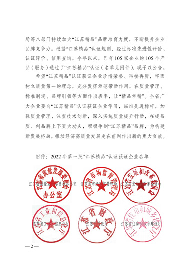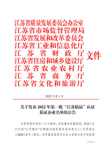 “江蘇精品”是江蘇省為推動形成一批自主創(chuàng)新、品質(zhì)高端、服務(wù)優(yōu)質(zhì)、信譽過硬、市場公認的“江蘇精品”品牌群體,以行業(yè)龍頭骨干、“專精特新”和“單項冠軍”等企業(yè)為主體認證對象,參照國際慣例、運用市場機制,由江蘇省市場監(jiān)管局會同省發(fā)改委等七部門開展的重點認證工作。